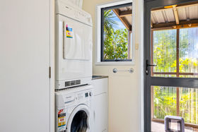 Electric skylight blinds and solid cedar joinery reveal quality in the details, while in-slab and under-tile heating, a log burner, and a new heat pump ensure warmth and comfort through every season. In addition, a solid block and concrete filled wall centred in the home provides thermal mass, further enhancing energy efficiency.