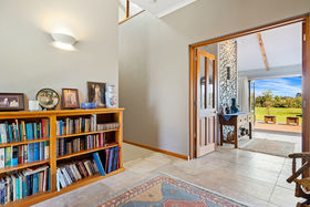 A study and media/library add flexibility and further depth to the design, while the home's three large double bedrooms are led by a vaulted principal suite with French doors, a walk-in robe, and a fully tiled ensuite finished with bespoke rimu joinery.